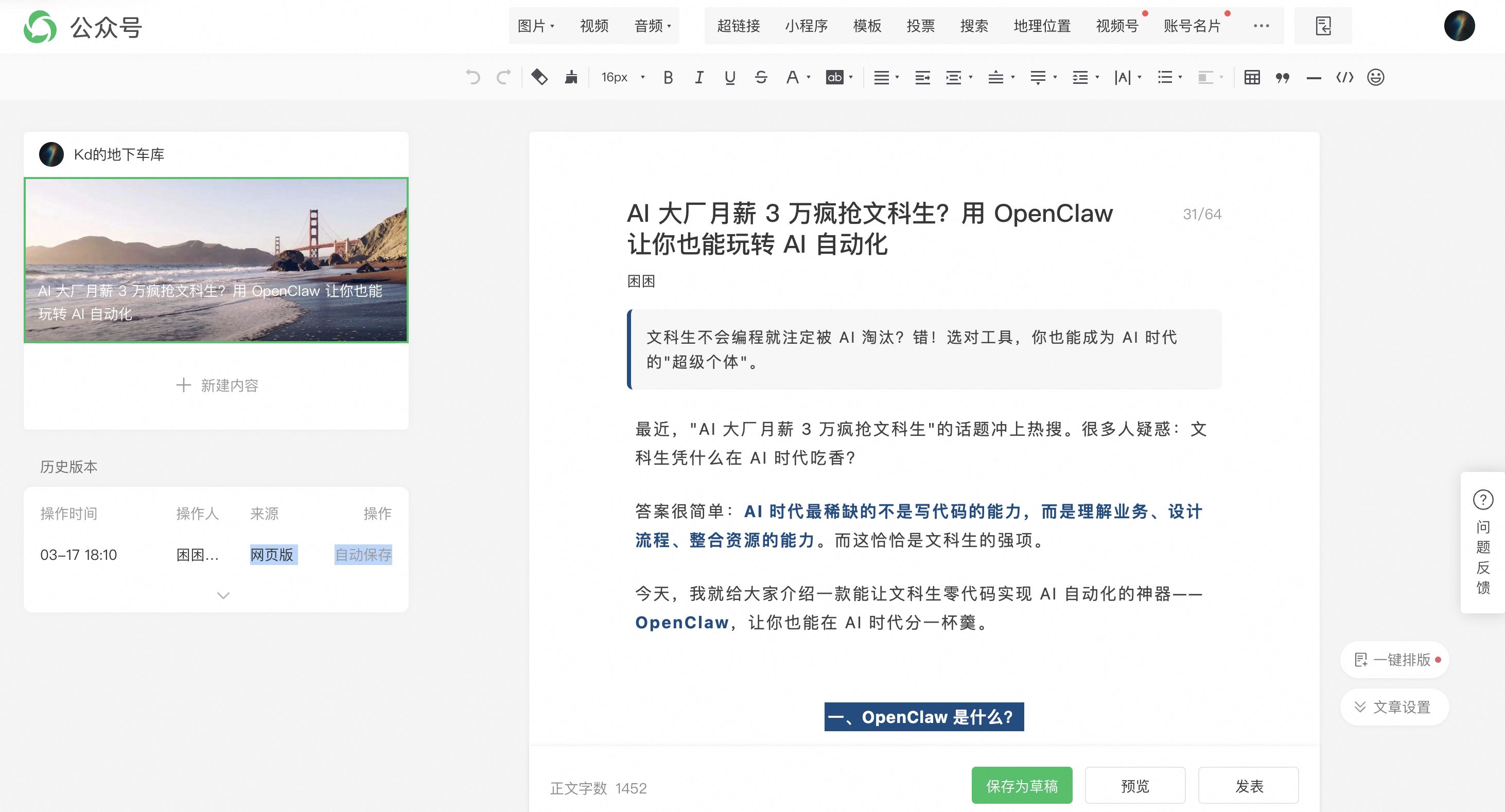 | 💻适用场景 | 公众号、小红书等自媒体运营。定时搜索热贴、公众号内容编辑、定时存到草稿箱 |